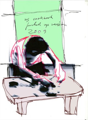 The project „us cookbook“ is a reflection about violence and death penalty as a pointless revenge of the contemporary class society. The project started in 2004 and connects different art forms: painting, drawing, installation, performance, sound and film. So far „us cookbook“ shows took place in Hamburg, Amsterdam, Brooklyn NY and Mestlin / GER.
